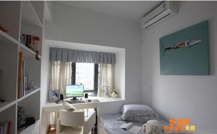 【次臥】書(shū)房和臥室兩用,絕不厚此薄彼,飄窗設(shè)計(jì)成書(shū)桌,即實(shí)用又節(jié)省了書(shū)桌的空間。