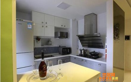 【廚房】開(kāi)放式設(shè)計(jì)讓空間看起來(lái)更開(kāi)闊,吧臺(tái)作為隔斷,看起來(lái)自然美觀。(重慶裝飾公司還是建議經(jīng)常做飯的家庭安裝一扇推拉暗門(mén),阻隔了油煙,裝飾效果也不差。)