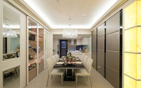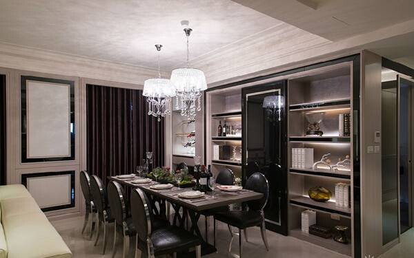 除此之外,水晶燈飾是最能表現(xiàn)古典奢華風格的代表元素,建議將材質(zhì)、線條簡化,燈具改用鍛鐵或白鐵骨架,更能呈現(xiàn)出現(xiàn)代奢華感。