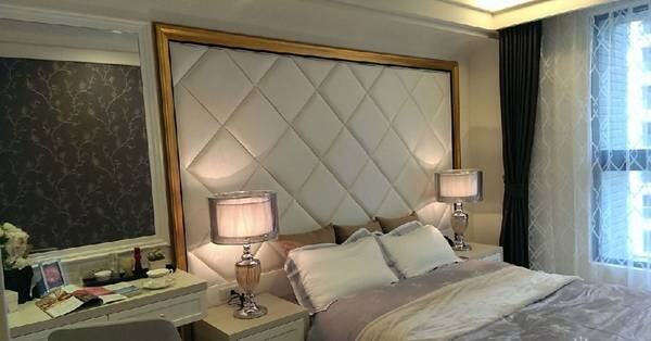 ▲繃皮菱格紋床頭兩側投射光暈柔美,讓時尚新古典更具立體層次。