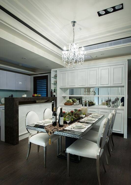▲保留古典家具的線條輪廓,搭配異材質(zhì)線板等元素重點,架構時尚大宅的華美氣韻。