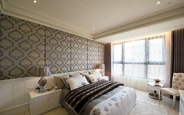 ▲燈具線條的古典韻味,在新古典風格臥房中具有畫龍點睛之效。