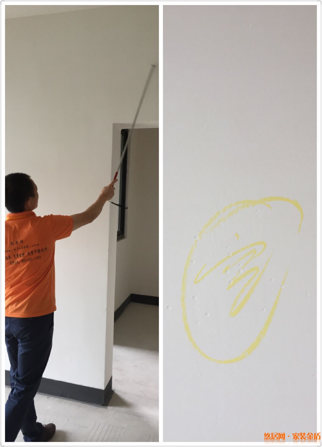 2.用檢測儀檢測陰陽角,垂直度范圍誤差超過0.3cm的情況下直接影響到家具是否擺放平整等問題。我們的驗房人員對測出陰陽角有誤差的情況下提出了建議與解決的辦法。但是小的誤差是可以通過后期裝修彌補的喲,所以我們后期在裝修過程中還會持續(xù)為業(yè)主服務(wù)。