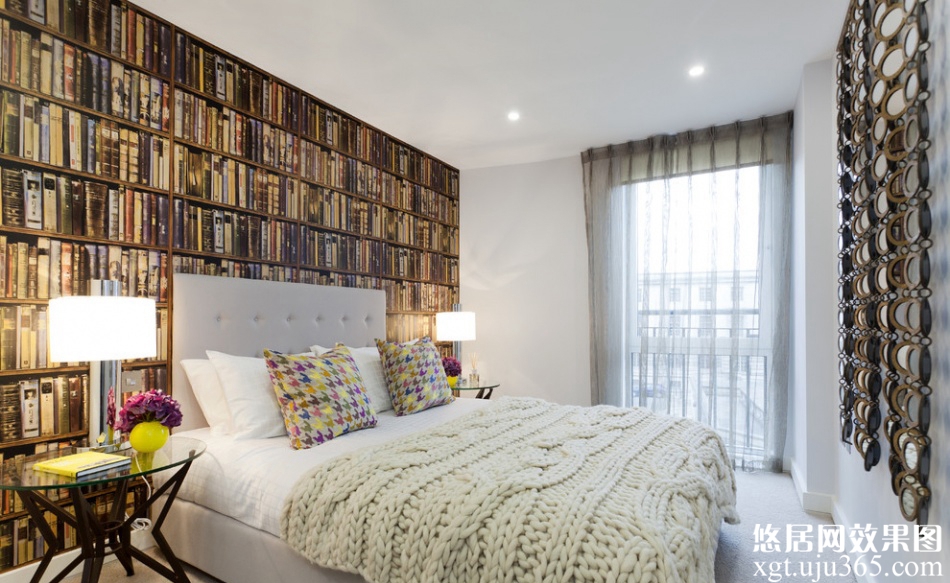 4.這樣的一個房間可謂是利用了室內(nèi)的每一寸空間,床頭設(shè)計的衣柜加書柜,兩者結(jié)合為一體的設(shè)計也是一種創(chuàng)新。