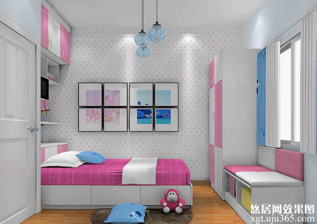 2.房間內的家具的尺寸也不要過大,拐角都應該做圓角處理,防止小孩子被磕傷。而且兒童寫字桌的桌面最好是設計成那種可以上下伸縮的,這樣可以隨著孩子的身高的遞增而提升桌面的高度。