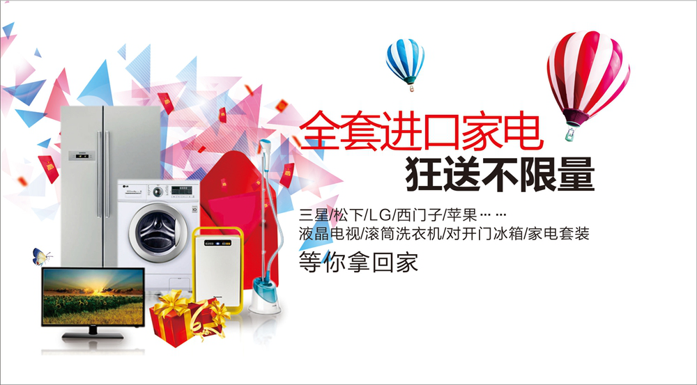 液晶電視/滾筒洗衣機/對開門冰箱/家電套裝,等你拿回家。