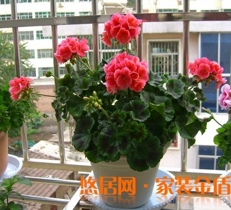 天竺葵花團(tuán)錦簇,豐滿成球,南北各地都能適應(yīng).高溫時(shí)節(jié),擺放室外疏蔭環(huán)境;寒冷時(shí)節(jié),在明亮室內(nèi)觀賞.天竺葵具有一種特有的氣味,這種氣味使蚊蠅聞味而逃.