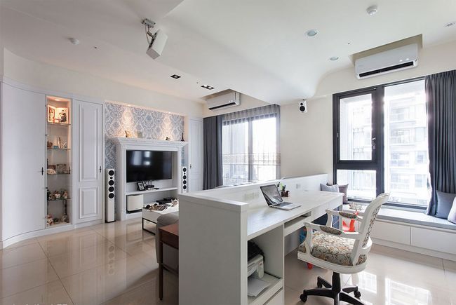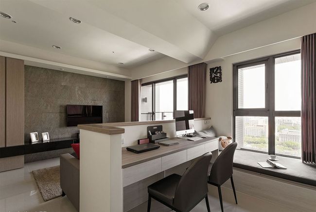 有些業(yè)主不喜歡封閉式書房的壓迫感,或家有孩童需要時時注意時,半開放式書房就成為一項(xiàng)好選擇,透過玻璃隔間的處理,讓視覺穿透無覽,噪音也能有效隔絕,無形中更增進(jìn)家人間的互動。而考量到玻璃隔間的形式,易讓使用者受外部影響而分心,設(shè)計(jì)師也建議,可搭配卷簾,針對不同的使用情況做彈性運(yùn)用。