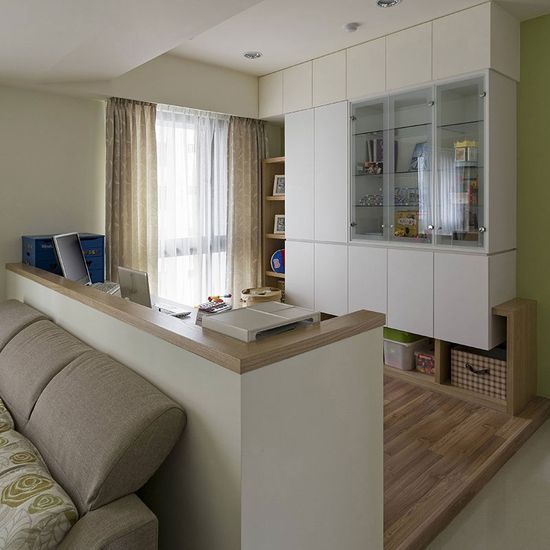 若家庭成員單純且不喜愛隔間造成的區(qū)塊感,設(shè)計(jì)師認(rèn)為,可以選擇以開放式手法規(guī)劃,透過半高墻或活動柜作為機(jī)能界定,或借由不同的天花造型、地板的異材質(zhì)與架高手法,在不增加隔間前提下,成為空間的隱性劃分。