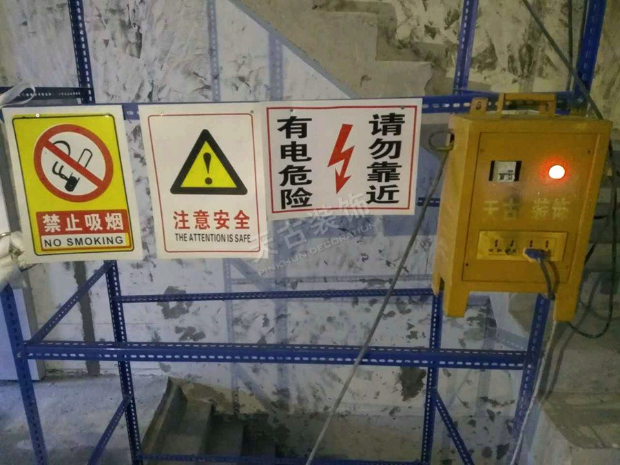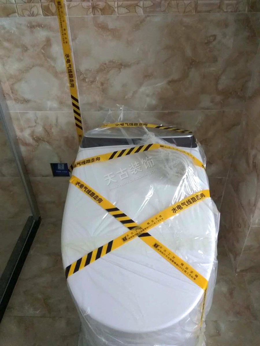 設(shè)有臨時取水位和臨時衛(wèi)生間;安全警示標志非常完善,以保證施工安全;質(zhì)檢工具齊全,驗收工序完整齊全;衛(wèi)生間、廚房等門檻做了特殊防水處理;臨時衛(wèi)生間坐便器做了特殊處理;