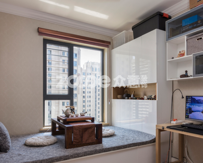 在榻榻米上置放上一個(gè)矮桌,平日里可邀上好友,品茶、對(duì)弈、聊天,承擔(dān)著休閑茶室的功能;或是在工作區(qū)域感到疲憊,那么移步榻榻米,無論是閉目養(yǎng)神還是品茶,無疑都是緩解壓力的方法。