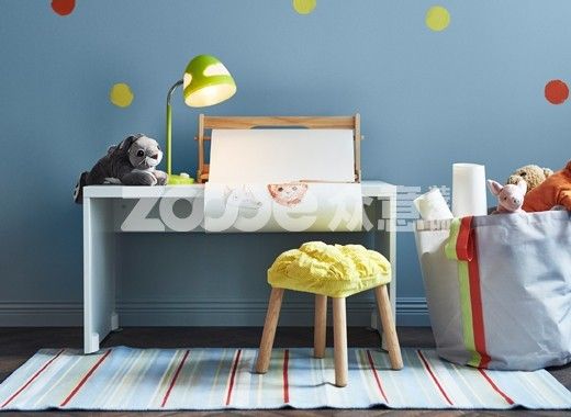 扶手椅區(qū)域用作喂奶和唱搖籃曲的地方,這樣你就能輕松把孩子放回床上了。你用的邊桌以后可以用作兒童凳——套上彩色的凳套,讓它更柔軟。一開始,這款獨立式的儲物袋可用來擺放舒適的毯子。孩子長大后,可用來擺放他們的東西。