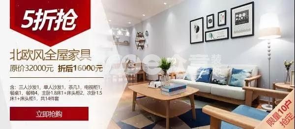 北歐風(fēng)全屋家具,原價(jià)32000元,折后16000元。