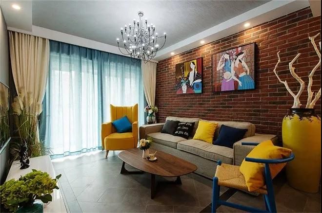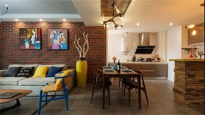 厭倦了白墻,就換上更具工業(yè)氣息的的磚墻,運用在客廳,在配上現(xiàn)代簡約風格家具與美艷的色彩。就很贊啦。