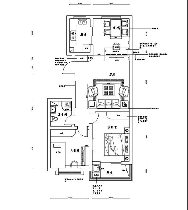 設(shè)計師擅用燈光,除了主燈外,客廳內(nèi)做了多處輔助光源,墻面配備四盞探照燈,如水波般的光線傾灑,為裝飾畫照明,沙發(fā)左右各安放了小臺燈,供夜讀時使用。