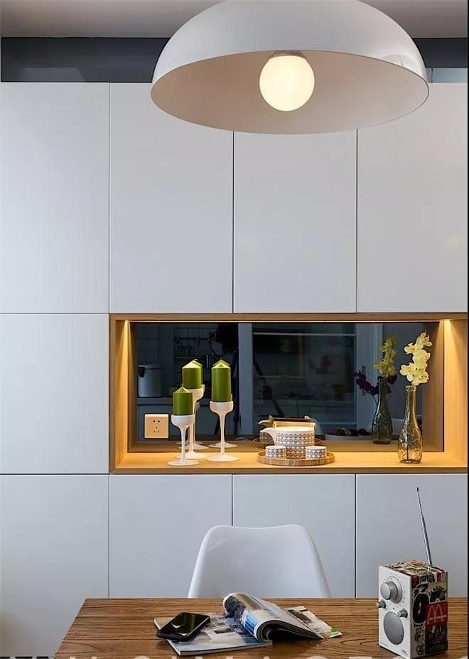 小小的儲物口,也亮點(diǎn)滿滿,與餐桌同色的木質(zhì)封邊,配合暖色燈光,分外溫馨。