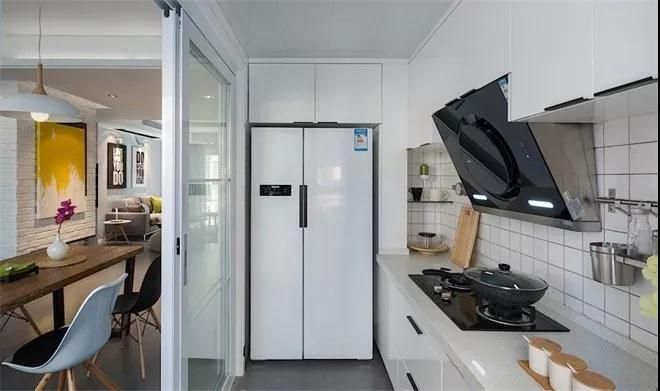 極具現(xiàn)代感的廚房,雙開門冰箱配合超強(qiáng)吸力油煙機(jī)組合套裝,滿足日常做飯需求綽綽有余呢。