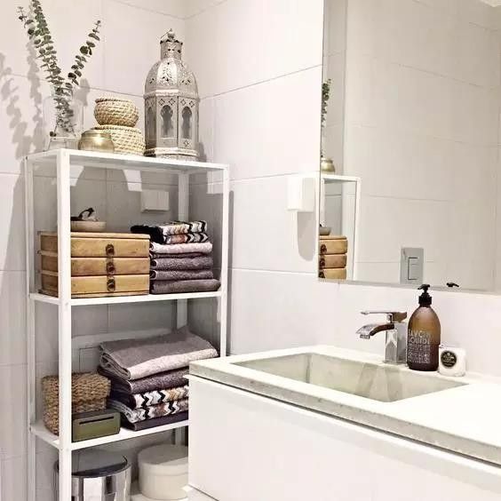 置物架對于小戶型衛(wèi)生間來說非常實用,放不下占地光的衛(wèi)浴柜,置物架可以充分利用馬桶上方的1㎡,把衛(wèi)生間的雜物收納輕松解決。