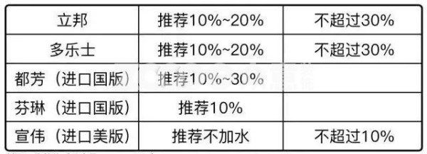 從圖中的兌水量來看,立邦和多樂士相比較其他3種國外品牌,兌水量明顯高出許多,兌水量高就意味著省漆,從而節(jié)省成本。