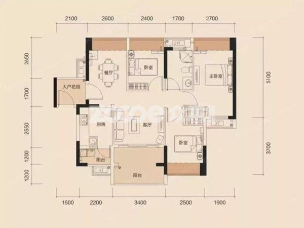 戶(hù)型圖中的尺寸是按mm計(jì)算的,圖中標(biāo)的2100實(shí)際上是指2.1米,這一點(diǎn)清楚了就能知道戶(hù)型面積了。但是,這個(gè)尺寸是指包含墻體的建筑面積,并不是指室內(nèi)面積。
