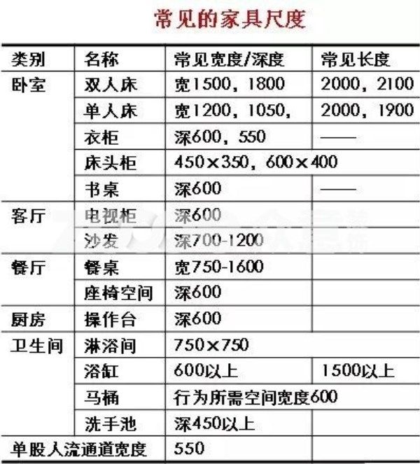 除了戶(hù)型尺寸還要知道家具尺寸,為什么有的房型在看戶(hù)型圖時(shí)挺大的,一到實(shí)際入住時(shí)就顯得特別擁擠?那就是你的心里沒(méi)有家具尺寸的概念。