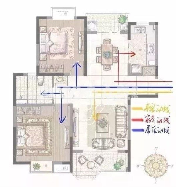 家庭動(dòng)線(xiàn)包括三條:居住動(dòng)線(xiàn)、家務(wù)動(dòng)線(xiàn)、訪客動(dòng)線(xiàn)