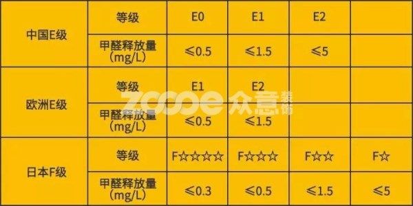 在中國(guó)國(guó)家標(biāo)準(zhǔn)《膠合板》(GB/T9846.1-9846.8-2004)中,甲醛限量等級(jí)分成E0、E1、E2三個(gè)級(jí)別。