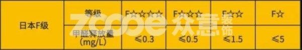 其中F★和F★★等級(jí)分別對(duì)應(yīng)我國(guó)的E2級(jí)、E1級(jí),F(xiàn)★★★★是日本環(huán)保標(biāo)準(zhǔn)最高的健康等級(jí)(是除芬蘭M級(jí)別外最高等級(jí)的環(huán)保標(biāo)準(zhǔn))。