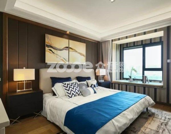 a.彩漆或者墻紙背景墻?,F(xiàn)代風(fēng)格同樣追求簡約時(shí)尚感,簡單的彩色墻漆裝飾是現(xiàn)代風(fēng)格最常用的設(shè)計(jì)。選定喜歡的墻漆顏色,千變?nèi)f化的色調(diào)任你挑選,營造臥室簡約而時(shí)尚的氛圍。