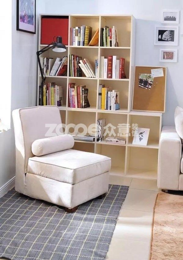 閱讀區(qū)的布置少不了書(shū)的擺放,一個(gè)簡(jiǎn)易的書(shū)柜或者置物柜,放置??吹臅?shū)籍,既方便取放,還能營(yíng)造“小型圖書(shū)館”氛圍,更有利于閱讀。
