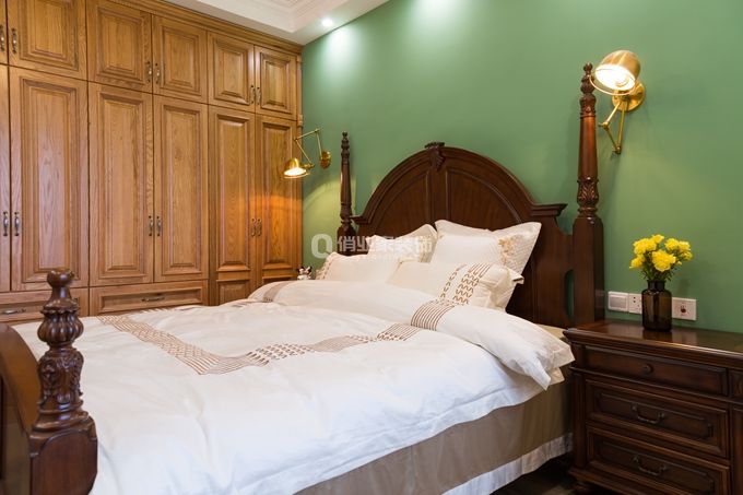 客廳的設(shè)計(jì),是設(shè)計(jì)元素的碰撞,新綠墻漆碰撞美式硬裝,效果清新帶點(diǎn)小美情懷。