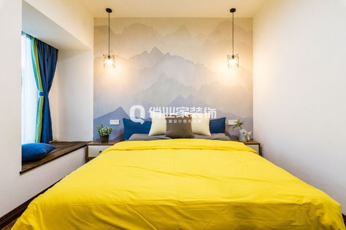 臥室背景墻舍棄了造型設(shè)計(jì),運(yùn)用色彩的跳躍為整個(gè)空間增色不少。到頂柜體利于整體連貫的設(shè)計(jì)感,同時(shí)增加了儲(chǔ)物功能,非常具有實(shí)用性。