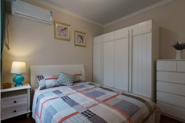 臥采用了淺米黃色的墻面乳膠漆,白色的實(shí)木家具,安靜不失溫暖,希望每天都有個(gè)好夢。