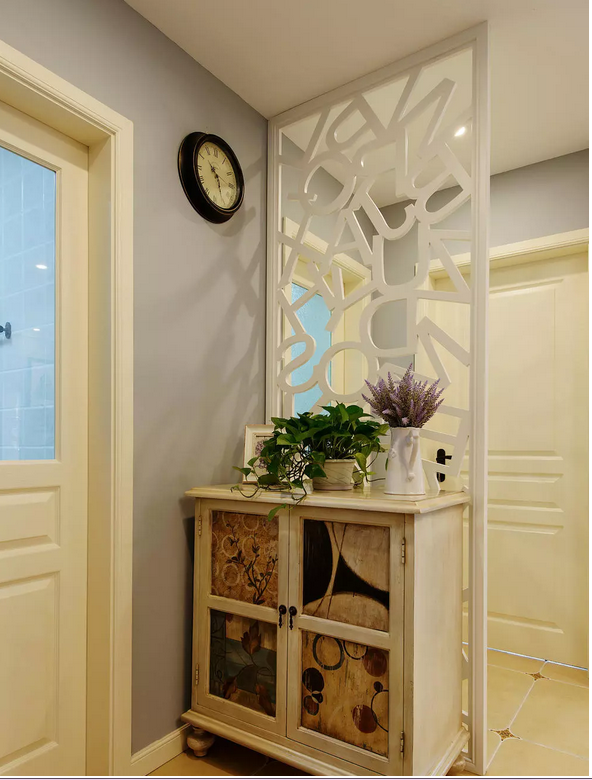 玄關(guān)鞋柜與定制花格白色屏風(fēng)很雅致