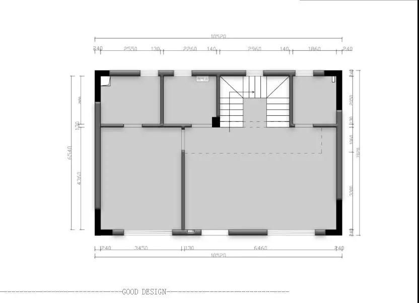 戶型缺點(diǎn):側(cè)面承重梁阻擋樓梯;縱梁重且低;無(wú)通風(fēng)采光。