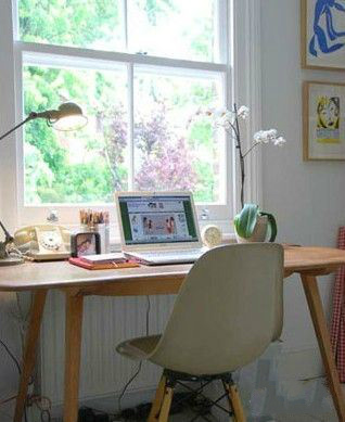 放在窗邊上的書桌,擁有極好的采光。在一個(gè)寧?kù)o的午后,當(dāng)你感到疲勞時(shí)望向窗外,看到大片綠色的植物,幫你消除疲勞之時(shí),又能很好的保護(hù)視力。
