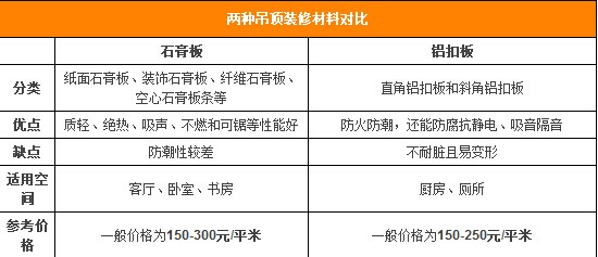 注意事項(xiàng)2:吊頂裝修材料PK榜