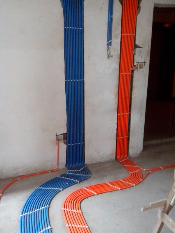 施工步驟2:水電工進(jìn)場-防水很重要  做水電,講究就是橫平豎直,布線是直的,90度,沒有說45度,或者是30度這樣。一般就是在拐彎的地方,不是完全90度,完全90度的話,那個線拉的時候容易被拉傷。有一點弧度的話,拉線的時候更順暢一點。  排水管安裝,沉箱現(xiàn)在新房子都有,在一般情況下,會做二次排水,本身工藝是這樣做,先在沉箱做第一次防水,24小時試水,然后二次排水,這個就像一個盤,像一個大的盤,裝了很多管,萬一哪個管子露了,它的二次排水就起到作用了,這些管子漏了,這些水還可以在里面排下去,反正在盤里面裝著。填充沉箱,一般來講,都是用槽粒是一種像粒裝的那種像煤渣那樣的東西,它在里面不負(fù)重。  做好水管的試壓,一般先打好5公斤,這個水管是打完5公斤,如果有那個標(biāo)尺它會往回掉,就是說有沙眼裝那種孔,這個是不合格的水電。