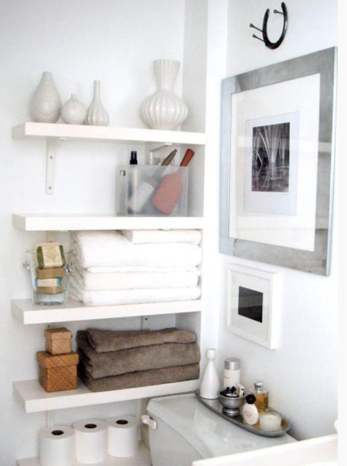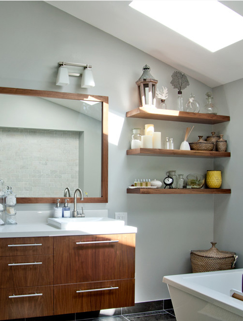 這樣的擱板可以放很多雜七雜八的浴室用品,如上圖的香薰、精油等等,而且拿取方便。
