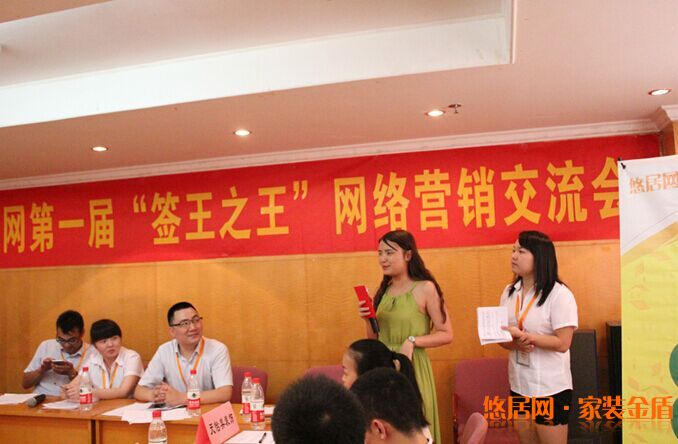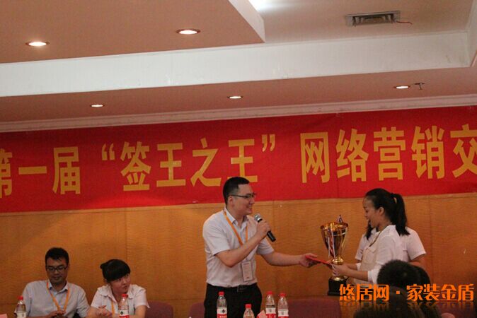 今天我們還為服務(wù)又好,做得又好的裝飾公司頒獎(jiǎng)了呢!希望大家以后都能以他們?yōu)榘駱訂眩?!這次悠居網(wǎng)舉辦的第一屆“簽王之王”網(wǎng)絡(luò)營(yíng)銷交流會(huì)非常的成功,讓各位網(wǎng)銷精英們受益匪淺,也讓我們受益匪淺。這次交流會(huì)讓我們更加的了解到怎么才能更好的為客戶解決問(wèn)題,怎樣才能更好的服務(wù)于大眾,也非常感謝他們!