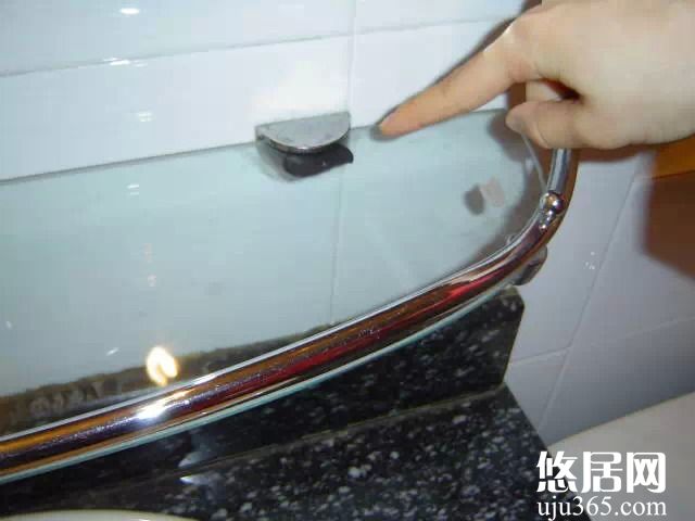 支撐玻璃架的五金件是在路邊的小店買的,低劣的質(zhì)量無法支撐起厚重的玻璃,盡管業(yè)主還加了個墊片補(bǔ)救,但玻璃還是很難牢固,非常危險。