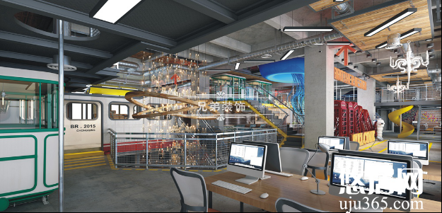 而如果幸運(yùn)的是,你恰好是一位設(shè)計(jì)部的員工,那么這里簡直是一個(gè)你兒時(shí)夢想的游樂場,想方案想到頭大了,不如在蹦床上躺一會(huì),或者開心的時(shí)候,從疊層二樓嗖一下順著鋼管滑下來;你如果是二樓獨(dú)立工作室的大腕,那么你可以和你的客戶,在超酷的太空飛艇里談一談你的方案,這樣的Style簡直帥呆了。