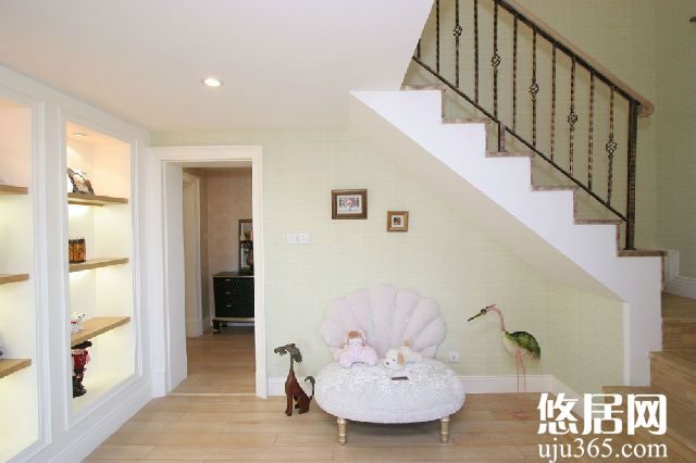 轉(zhuǎn)角樓梯能夠帶給人很好的視覺感受,樣式雖然簡單卻也能賦予很多的靈活性,同時能夠在縱向上分割視覺空間,給室內(nèi)很好的層次感。