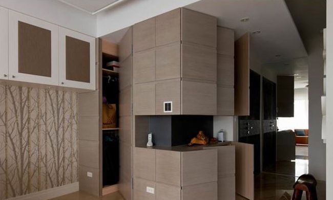 想擁有盡可能的的實(shí)用收納量,卻又不想要傳統(tǒng)笨重的柜子,設(shè)計(jì)師建議,可以利用繃布或異材質(zhì)來做柜子的表面,并且與兩側(cè)的色系相仿,不僅能巧妙地結(jié)合不突兀,整體也較有連續(xù)性,如此一來,就能創(chuàng)造柜體的隱藏效果,秘密擁有收納大空間!