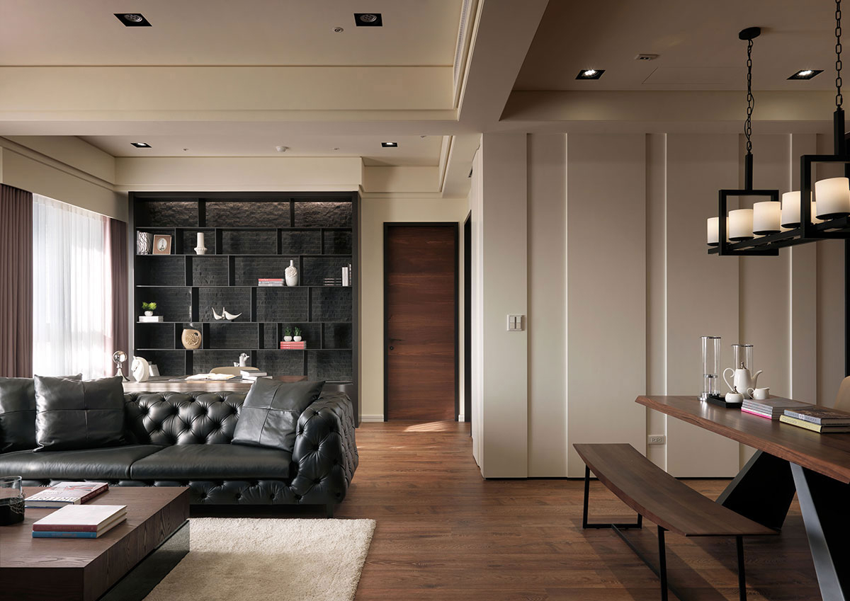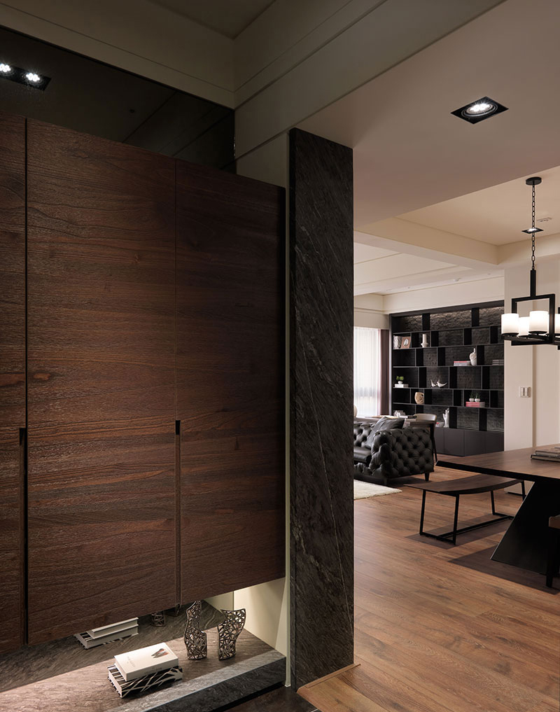 一般在規(guī)劃隔間時(shí),若只是多加一道墻劃分,不免有些可惜。因此,設(shè)計(jì)師建議在場(chǎng)域與場(chǎng)域間,若有隔間需求時(shí),可以透過(guò)雙面柜的概念,達(dá)到機(jī)能界定與收納加倍的兩種效果。而在設(shè)計(jì)表現(xiàn)上,也能針對(duì)整體的風(fēng)格設(shè)定,運(yùn)用一些造型語(yǔ)匯,讓柜體無(wú)違和地融入空間中。
