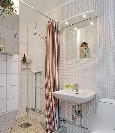 如果已經家裝完畢又改造不易的浴室不妨選擇方便又美觀的浴簾,一是預算少,二是風格各異,加一塊浴簾也能補救一下。浴簾能保證水珠不濺到干區(qū),但是不能阻止地上水流問題,那不妨在地上做防水條或者地漏。