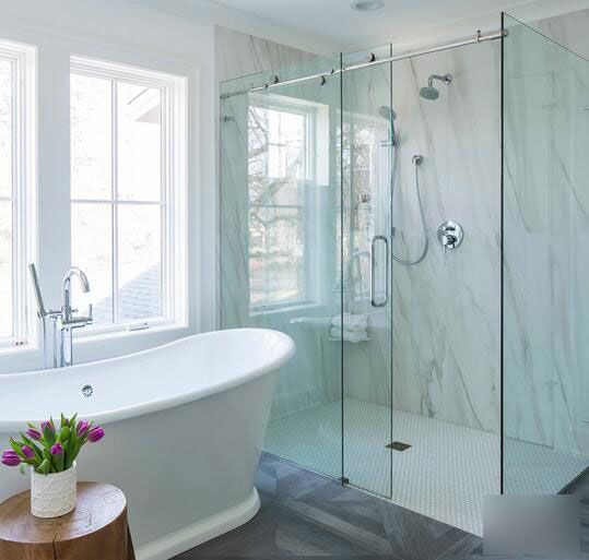 玻璃阻隔也是常見的方法,玻璃有半隔斷和全隔斷,做到完全干濕分離,全阻隔在冬天的時候也能聚集熱氣,但也注意做好換氣通風,最好選用上面不封頂?shù)牟AЦ魯唷6胱韪粼诓Aб崎T的下方也應做好防水條。