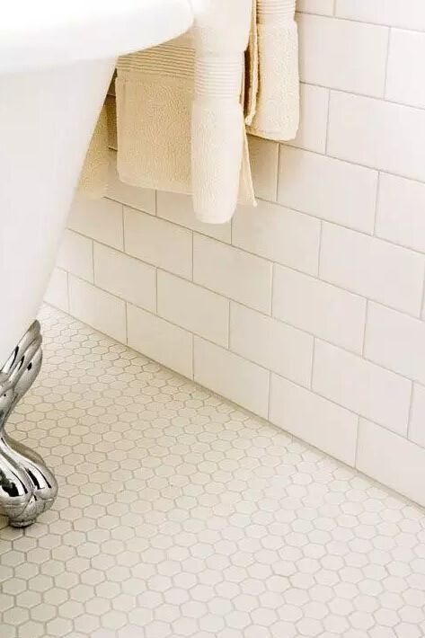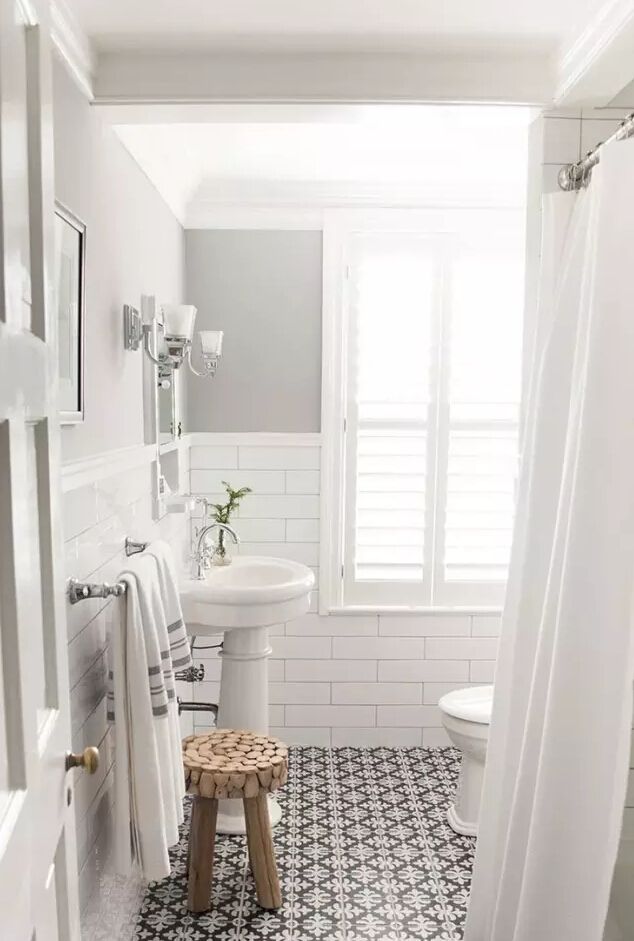 顏色淡雅的白底花紋磚,和白色方磚組合搭配,過(guò)渡銜接也很自然。