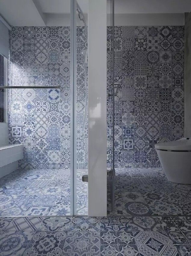 當(dāng)然,花紋磚鋪滿墻面,也是美的。但是出于氛圍的考慮,還是推薦選擇顏色淡雅些的。▼.