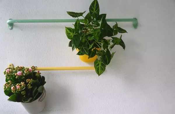 在座椅邊也打了洞,裝上了橫桿,掛了花草